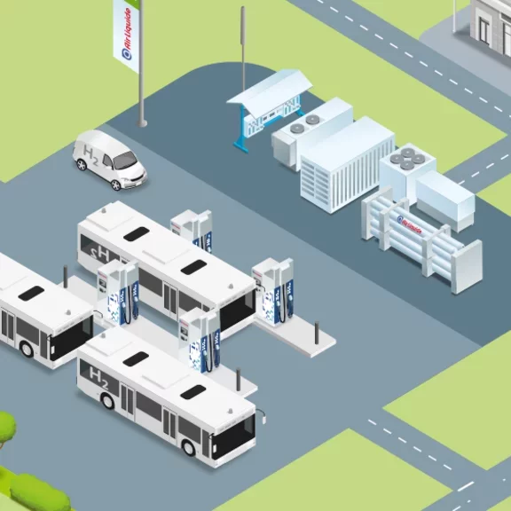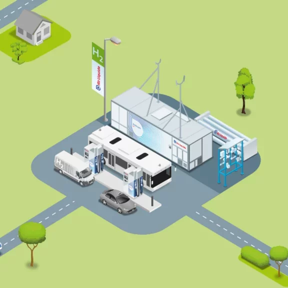 Air Liquide propose la gamme la plus complète de stations hydrogène et de services associés pour répondre à tous vos besoins en matière de mobilité hydrogène.